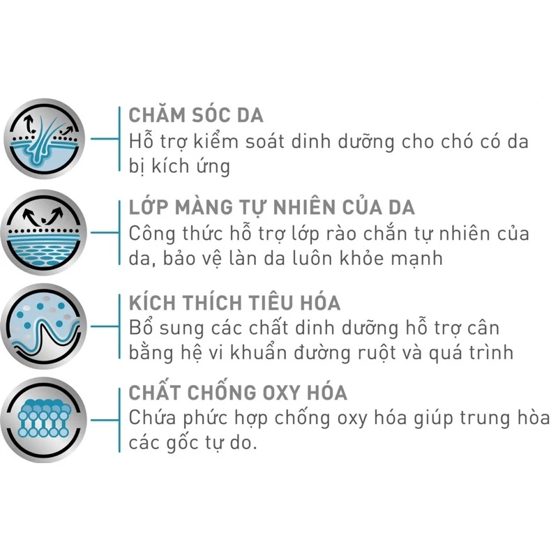 – Chăm sóc da: Giúp quản lý chế độ dinh dưỡng của những chú chó có làn da nhạy cảm.