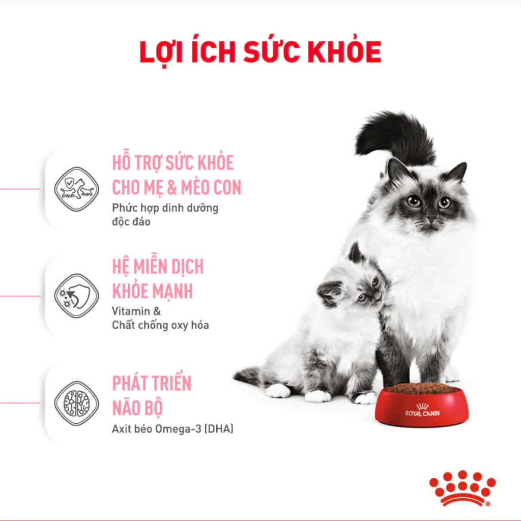 2. Công dụng thức ăn Royal Canin Mother & Babycat mèo mẹ mèo con túi 400g
