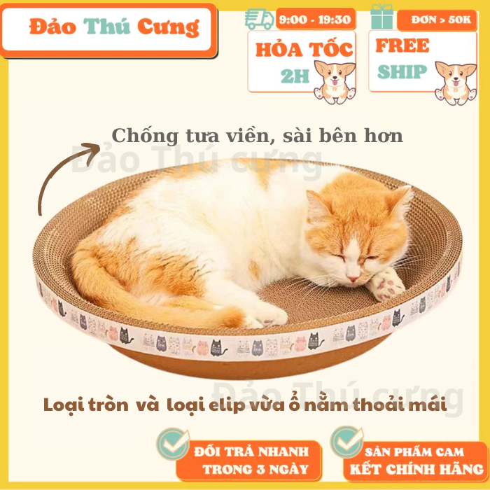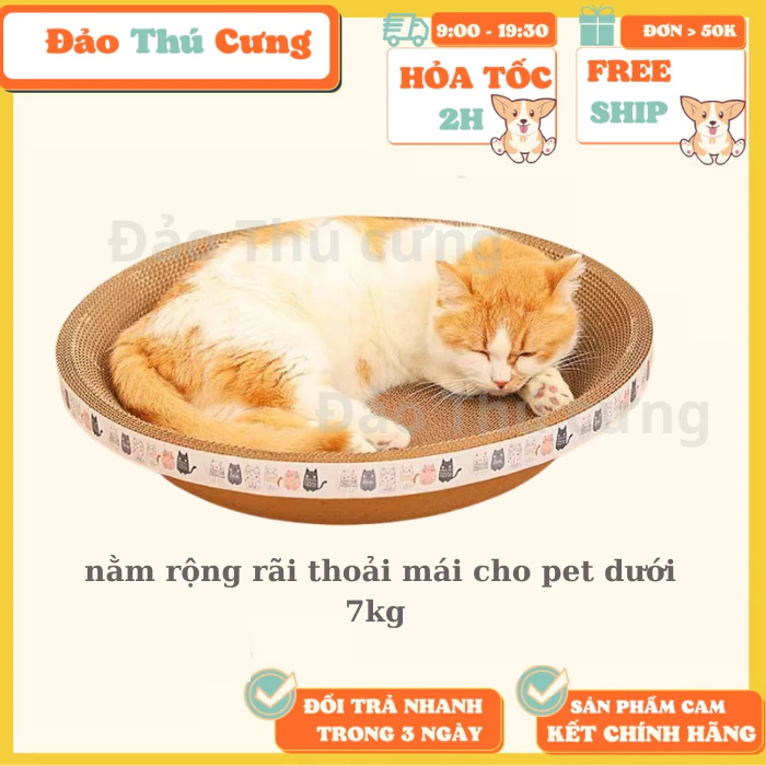 ✔️ Sử dụng bàn cào móng làm đồ chơi cho mèo, giúp mèo mài móng, giảm thiểu hư hại đồ đạc trong nhà. Và cũng là chỗ nằm thoải mái cho mèo.