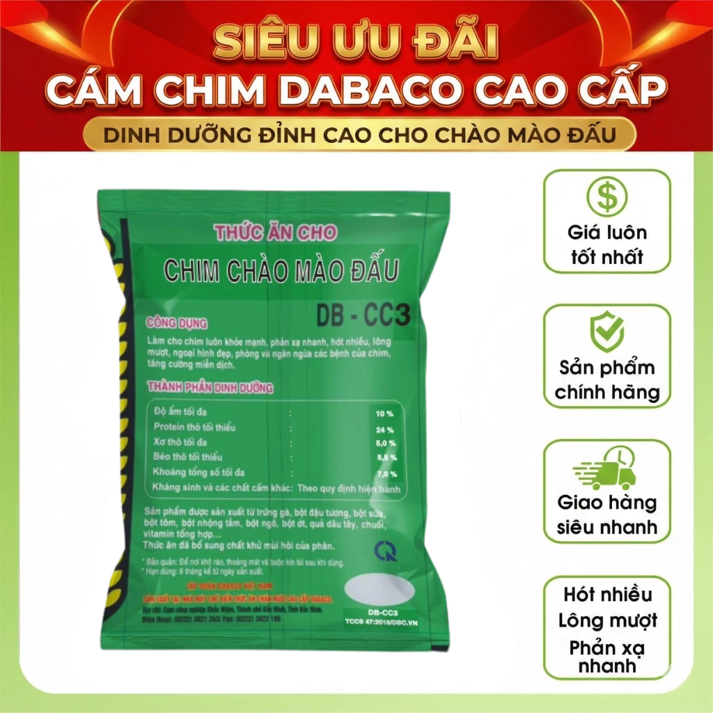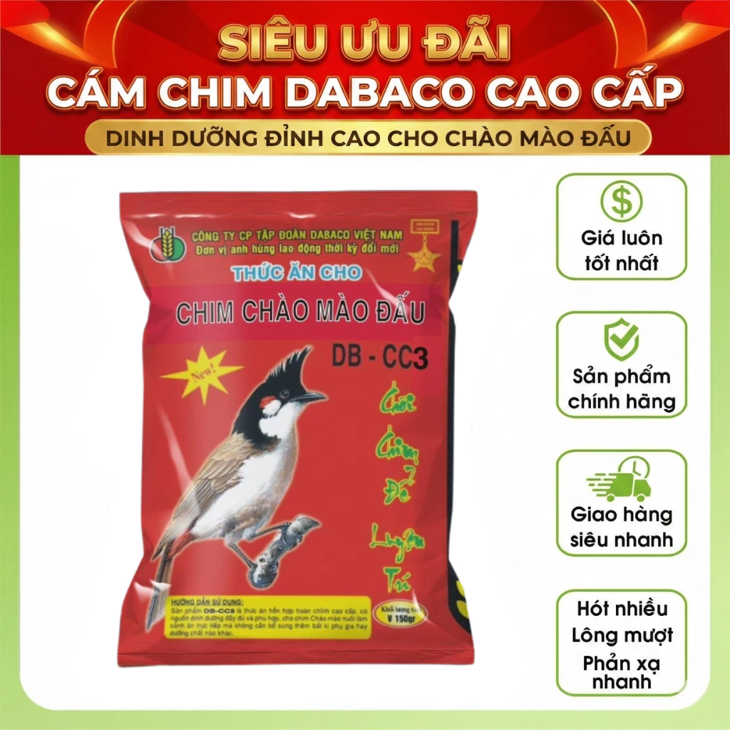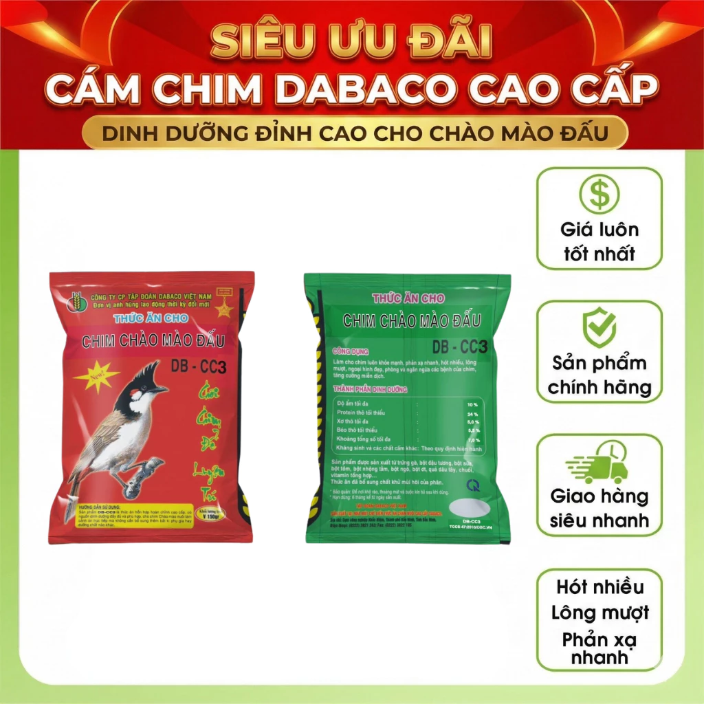 Để chú chim Chào Mào của bạn luôn sung sức, hót đấu bền bỉ và giữ được bộ lông đẹp, chế độ dinh dưỡng là yếu tố quyết định. Cám Chào Mào Đấu Dabaco DB-CC3 được nghiên cứu chuyên biệt để đáp ứng nhu cầu năng lượng cao cho các chú chim thi đấu và hót giàn.