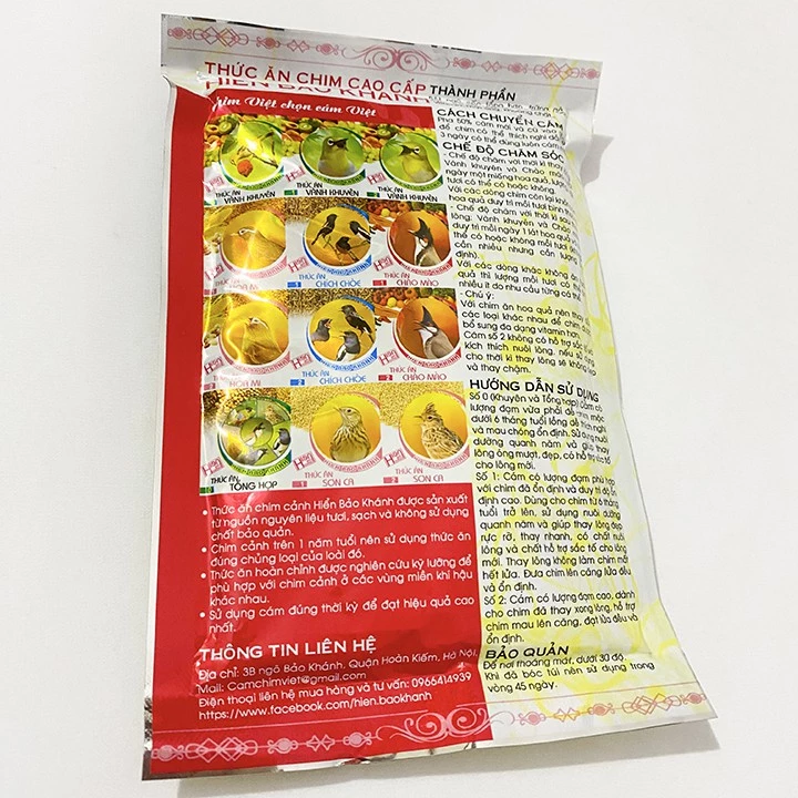 – Thức ăn chim Hiển Bảo Khánh cung cấp đầy đủ dinh dưỡng và vitamin giúp chim khỏe, thay lông, nhanh, đẹp. Sản phẩm an toàn, chất lượng, hiệu quả.