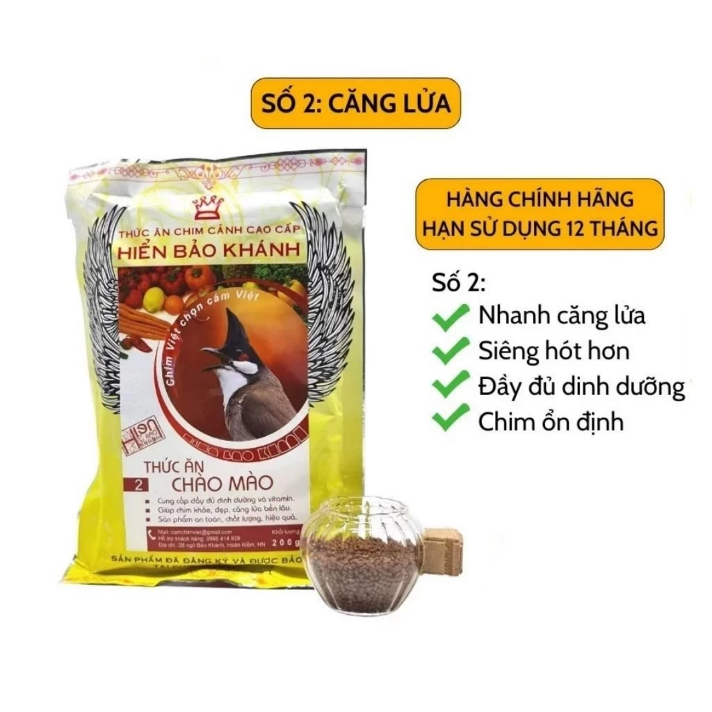 Cám chim chào mào Hiển Bảo Khánh số 1, 2 tổng hợp (Dưỡng, Căng lửa) Phụ kiện lồng chim anh quân