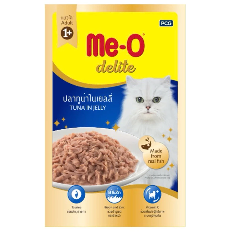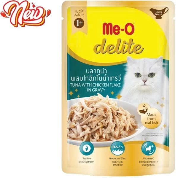 – Me-O Delite cung cấp thức ăn ngon bổ dưỡng, có đầy đủ các thành phần chất lượng cao, cho những chú mèo yêu quý của bạn.