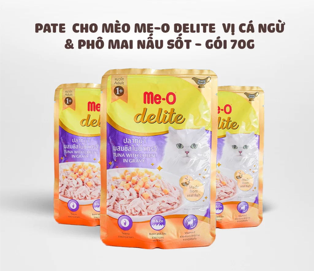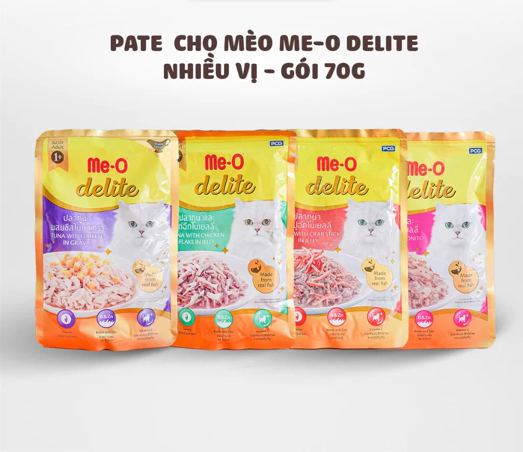 – Khi mèo của bạn dùng thử Me-O Delite, Bữa ăn của mèo sẽ không còn là bữa ăn bình thường nữa, mà là bữa ăn nhiều dinh dưỡng và ngon miệng Pate Me-O Delite với chiết xuất từ thịt cá ngừ mang đến hương vị đại dương ngập tràn trong từng miếng cắn.
