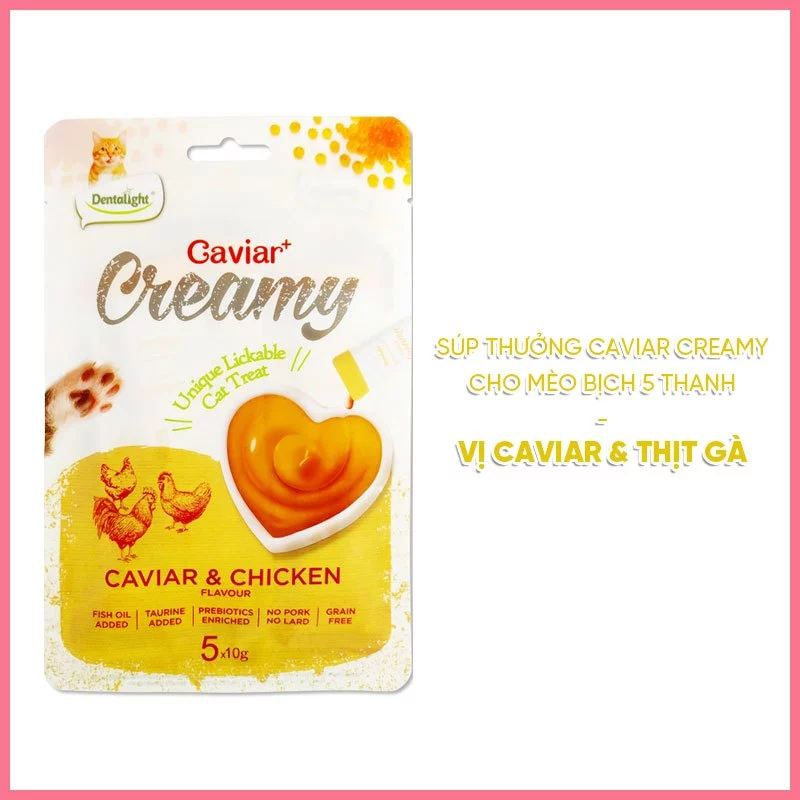 Súp thưởng mèo Caviar Creamy Dentalight dinh dưỡng tự nhiên cho mèo trưởng thành